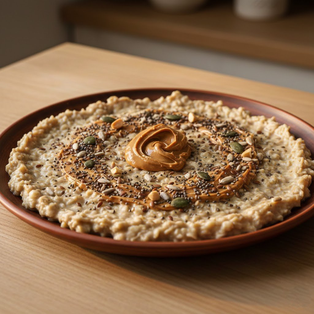 Rolled oats cooked in milk or water are stirred with peanut adulation and seeds. This simple breakfast provides a steady release of energy and a solid protein punch. Add fruits or cinnamon for redundant flavor without redundant trouble.
