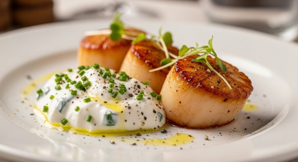 The Greek yogurt with lemon juice and chives creates a balance to the rich flavors of the dish. The dish transforms into an elegant restaurant-style appetizer when a creamy cool component is added which maintains all its health benefits.