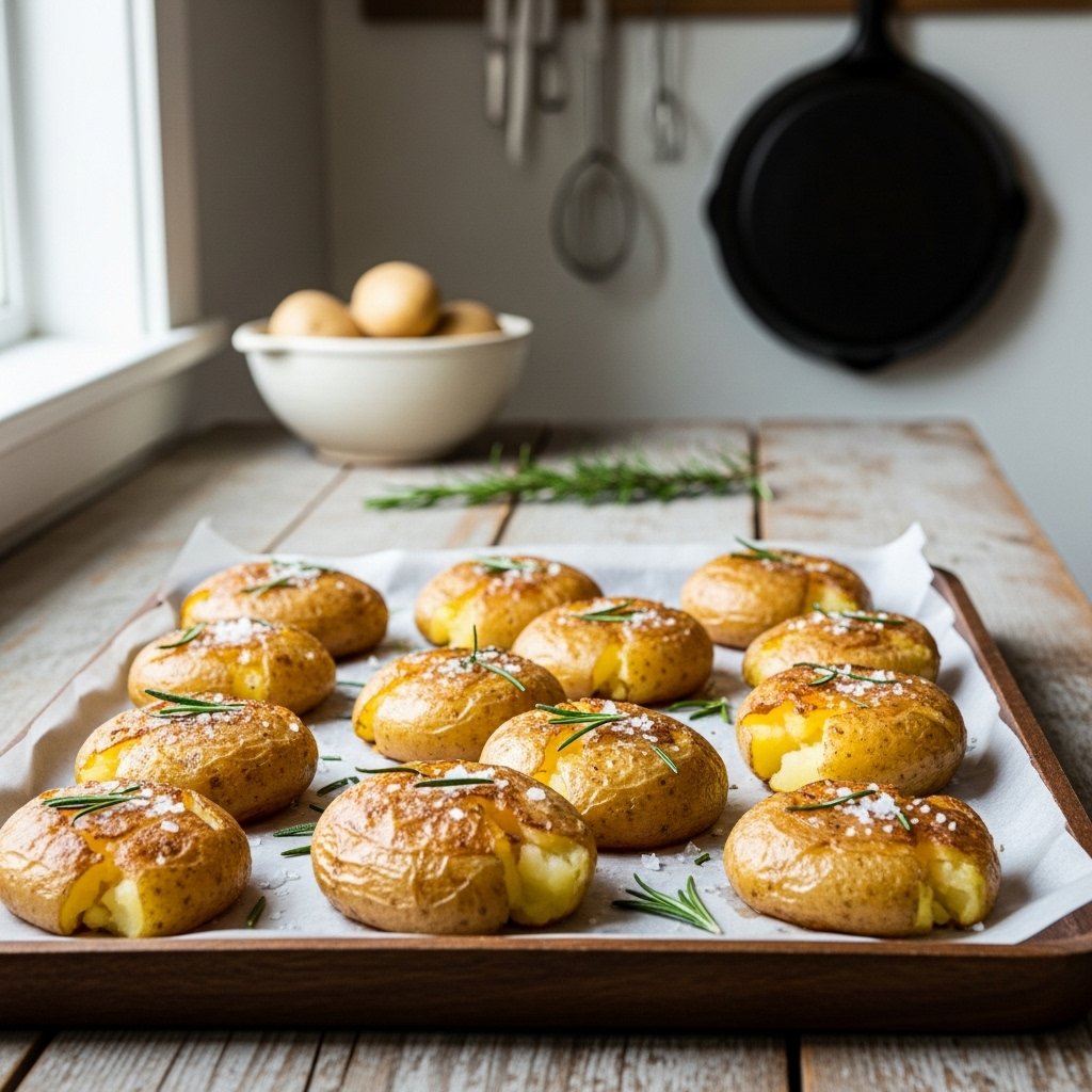 People eat deep-fried potatoes on a regular basis because they enjoy the dish’s crispy texture which becomes hard to consume when people try to eat it with two particular problems that arise from its high oil content and difficult cleaning procedure. Crispy Smashed Parmesan Potatoes function as the optimal replacement snack for people who seek alternatives to fried foods. Cooking requires two separate steps which begin with boiling food and conclude with baking to create a surface finish that resembles glass while maintaining a core structure that matches the texture of mashed potatoes made with 80 percent less oil.