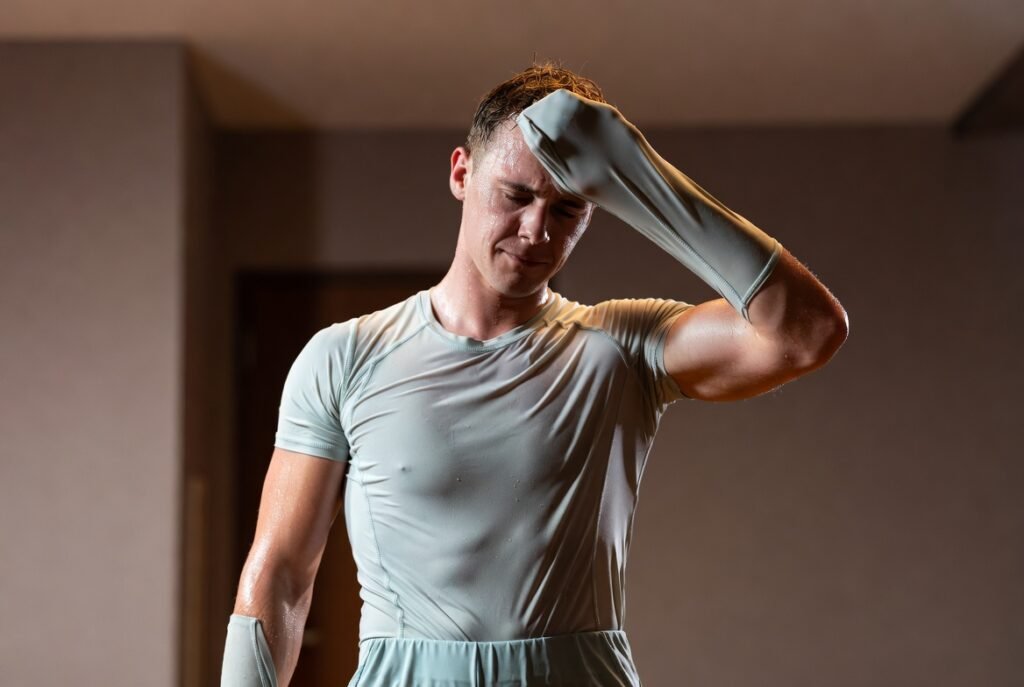 Exercise and changes in metabolism can promote sweating. The stagnant sweat on the skin can be irritable and also more so at the places where there is rubbing of skin.