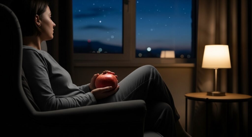 High-sugar treats should not be eaten after dinner because they create sleep problems despite pomegranates being beneficial for health. The body experiences insulin spikes when people eat fruit during the day which prevents them from entering deep sleep.