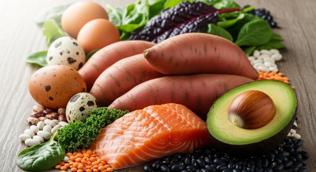 Eggs, oats, avocado, leafy greens, sweet potatoes, salmon, and legumes should be their priorities. These foods provide long-lasting energy without spikes in blood sugar. They hold you longer, make those cravings so low, and they provide the nutrients that your body requires so that it actually operates at its best every day.