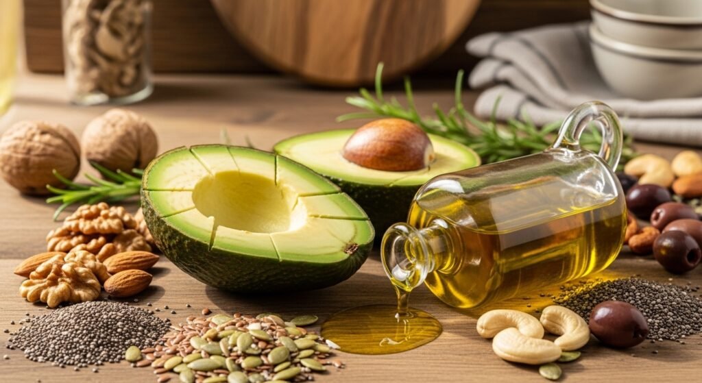 Not all fats are harmful. Consuming fats in the form of olive oil, nuts, seeds and avocados can be healthy as they aid in protecting the brain and balancing cholesterol levels provided a person consumes them in moderation.