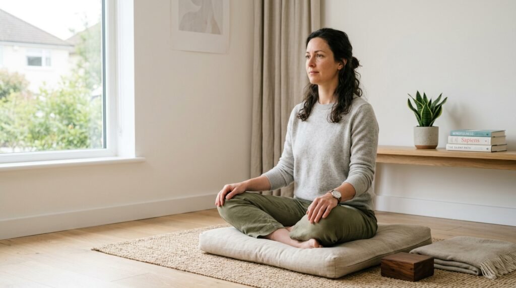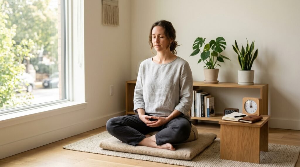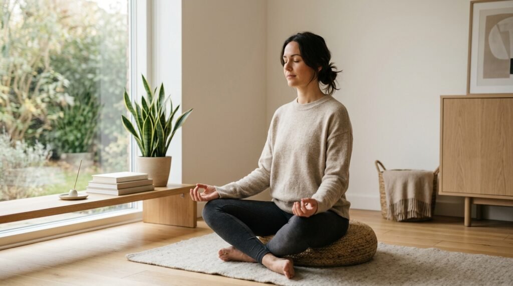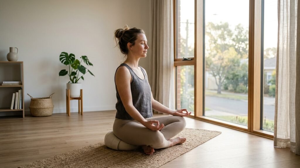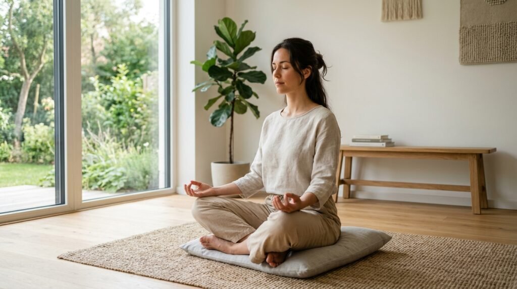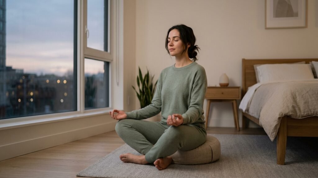 Evening meditation helps the body wind down. When thoughts race, it gently calms them – sleep often grows deeper with regular practice.