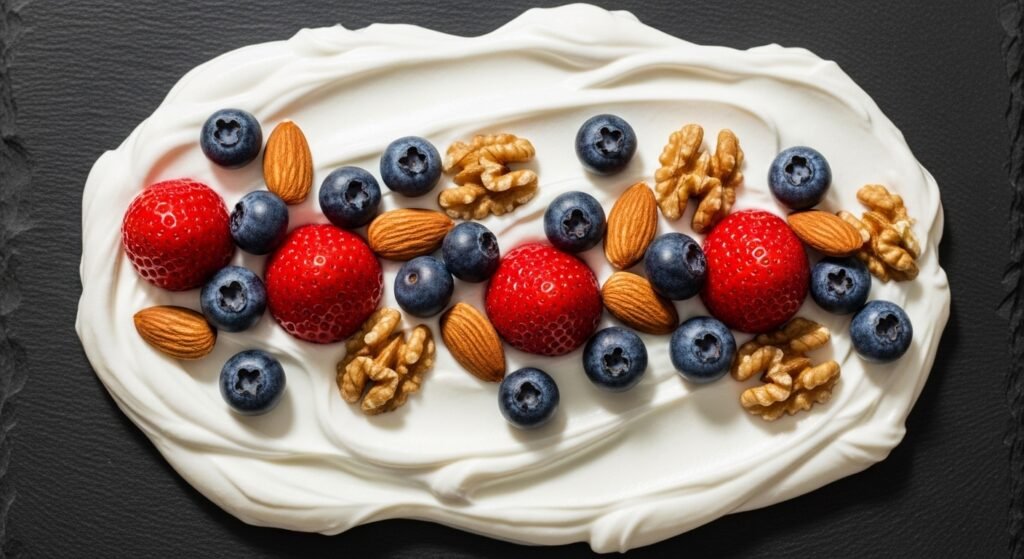 Greek yogurt which comes in plain non-fat or low-fat forms creates a higher protein-to-fat ratio when used as a base for parfaits or toppings. The active cultures which live in the product offer probiotics to the gut system, which helps with digestion after meals.