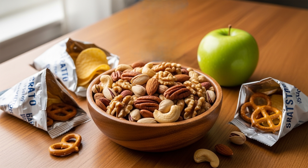 As we can read, the salted crackers and chips usually have a lot of sodium in them. Their nuts can be substituted by unsalted that is one of the best sources of healthy fats, magnesium, and protein and is not excessively supplied with salt.