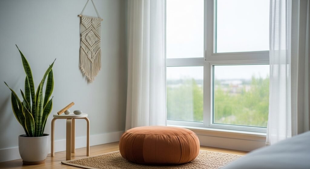 One does not necessarily need to have a meditation room of his or hers. It is either a solitary section of your bedroom, a balcony/ parked car. One is to find a place, where he will not be distracted, and to be at home.