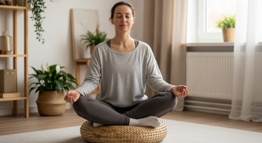 It is comfort and not strictness of the rules of posture. Seat on a chair, cushion or even the floor with a vertebral column relaxed but erect. You are also inclined to keep your toes on a sitting position and also make sure that you are not distracted by body pains.