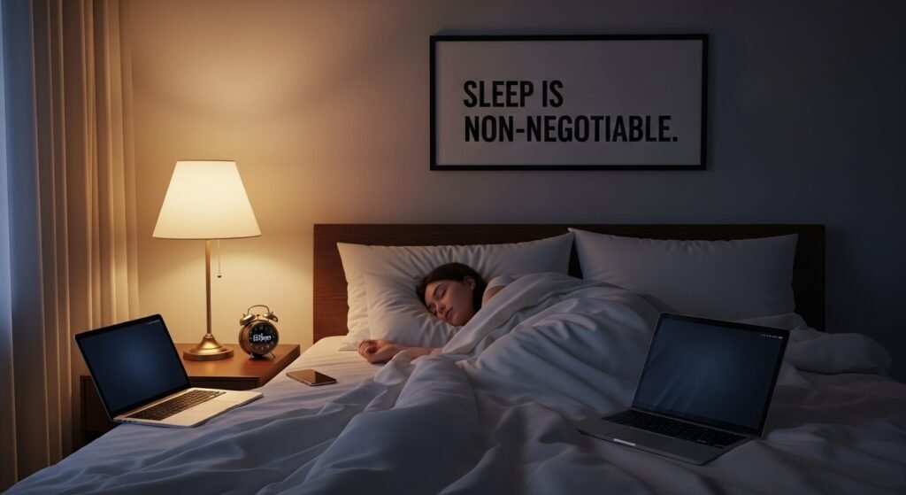 Researchers underscore that good and sound sleep is primal to mental well being, mood management and well beings. Spending time at the screen or working to their detriment in favor of a rest may result in loss of well-being.