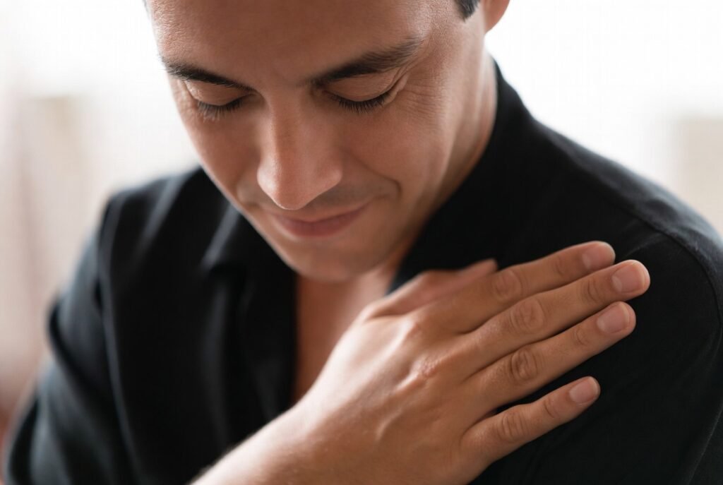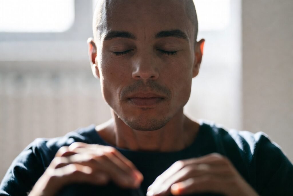 Your hand should touch your heart area. The process of feeling your heartbeat rhythm produces a calming effect. The experience ensures your safety at this moment because you have “anxious thoughts.”