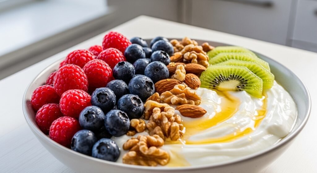 The Greek yogurt has sufficient amounts of protein and probiotics which act to maintain the wellness of the gut. Normal digestive system may work in promoting the metabolism, and diminish the bloating of stomach section. One can consume Greek yogurt with fruits to complete a well-balanced breakfast or eat it with nuts to complete a complete and healthy breakfast.