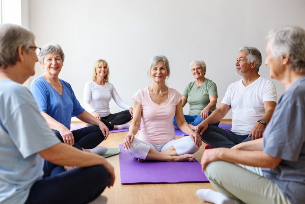The yoga lessons are held in a group, which offers a certain sense of community and the sense of loneliness is eliminated. The elderly are permitted to socialize and engage into a low impact and safe activity.