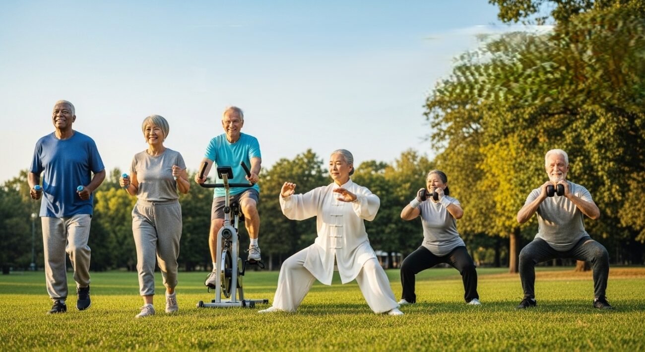 Regular physical activity helps regulate key hormones like insulin and leptin. The elderly improve their glucose transport capability into muscle cells through exercise which helps them achieve weight control and normal blood sugar levels.