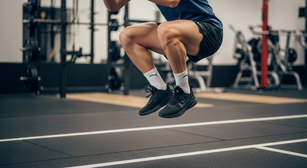 The explosive jump squats (40 seconds) get the largest parts of your body engaged in a fire within a few seconds, your pulse rate goes to red, and then the burn light of metabolism comes on, which continues long after the official end of an athletic exercise.