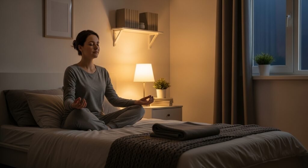 The initial process to go to bed in the form of meditation is the establishment of a calming atmosphere. Switching off bright lights, switching down noise and moving off the screens are the qualities that would help inform your body that it is time to calm down.