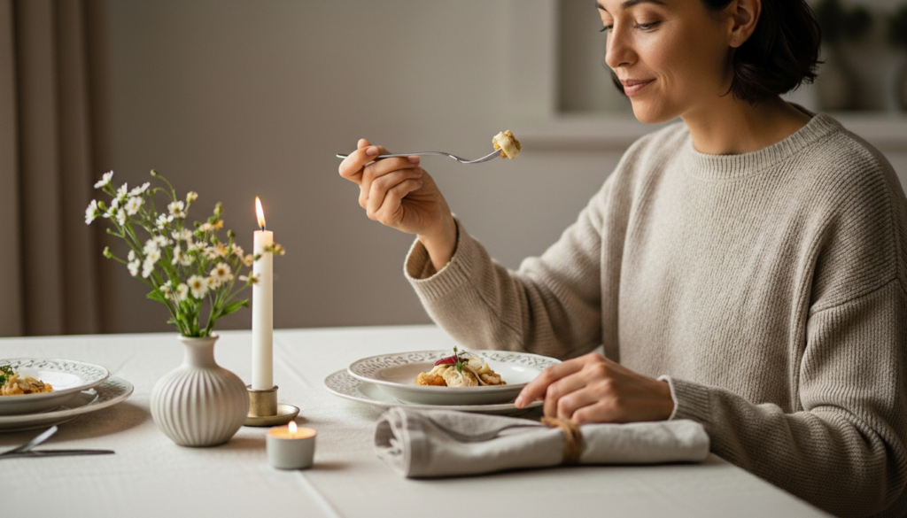 Eating is usually relaxed and social, and this encourages one to be conscious of eating. Mindful eating may contribute to improving their appetite, become more content and cease overeating, transforming food into relaxing daily rituals.