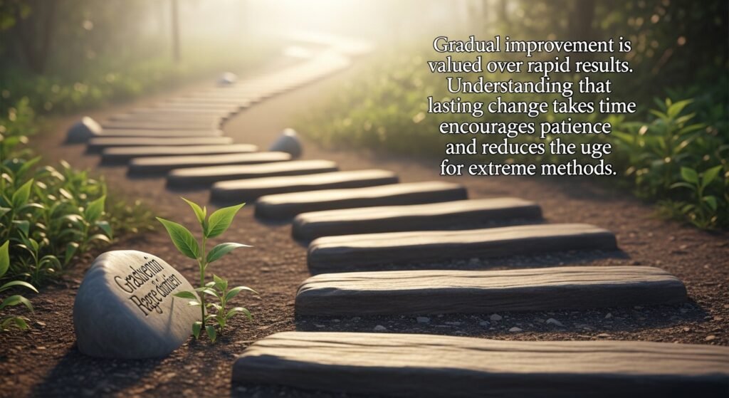 Gradual improvement is seen as good instead of something to be feared. Understanding that the permanent change is not done overnight will help people be patient and hardworking to that they will not necessarily seek a faster way out.