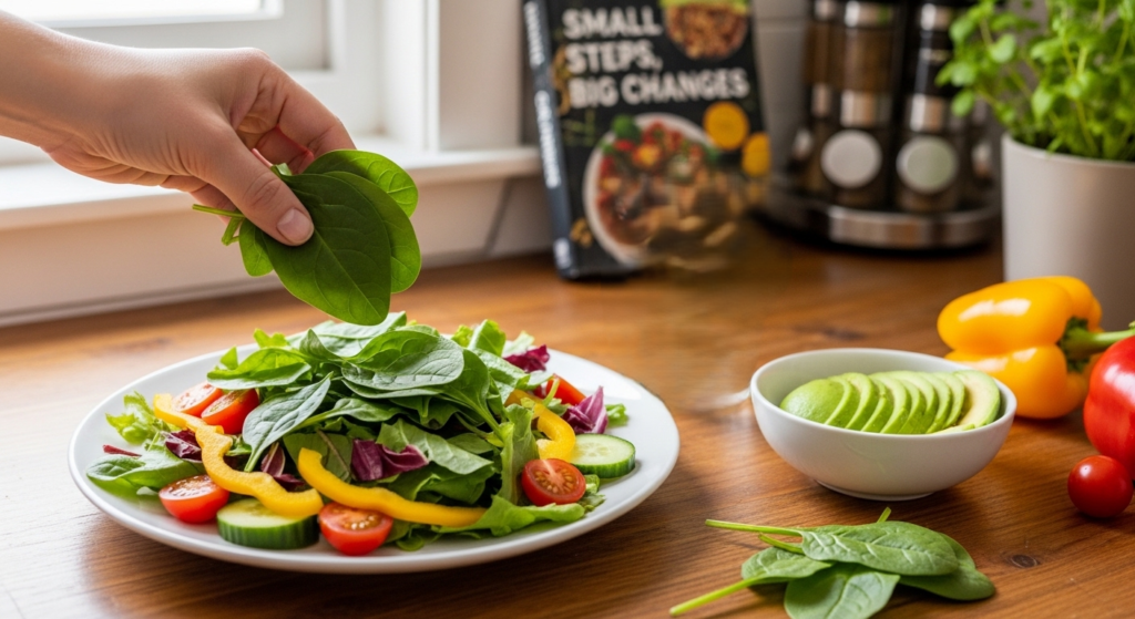 Rather than making such a switch at once, individuals pose one or two habits. Gradual alterations like addition of vegetables or more hydration do not startle as it is gradual.