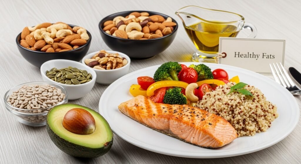 Female meals can be added to foods that include healthy fats such as avocados, nuts, seeds, olive oil, etc. They reduce the rate of digestion and assist the body in digesting the carbohydrates at a slower rate.