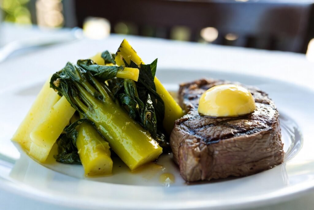 Restaurants use butter as a finishing touch for their vegetables and steaks to enhance the flavor of these dishes and even a single tablespoon of butter adds 100 calories. Your steamed vegetables appear shiny because they have received at least one tablespoon of fat which remains concealed from view.