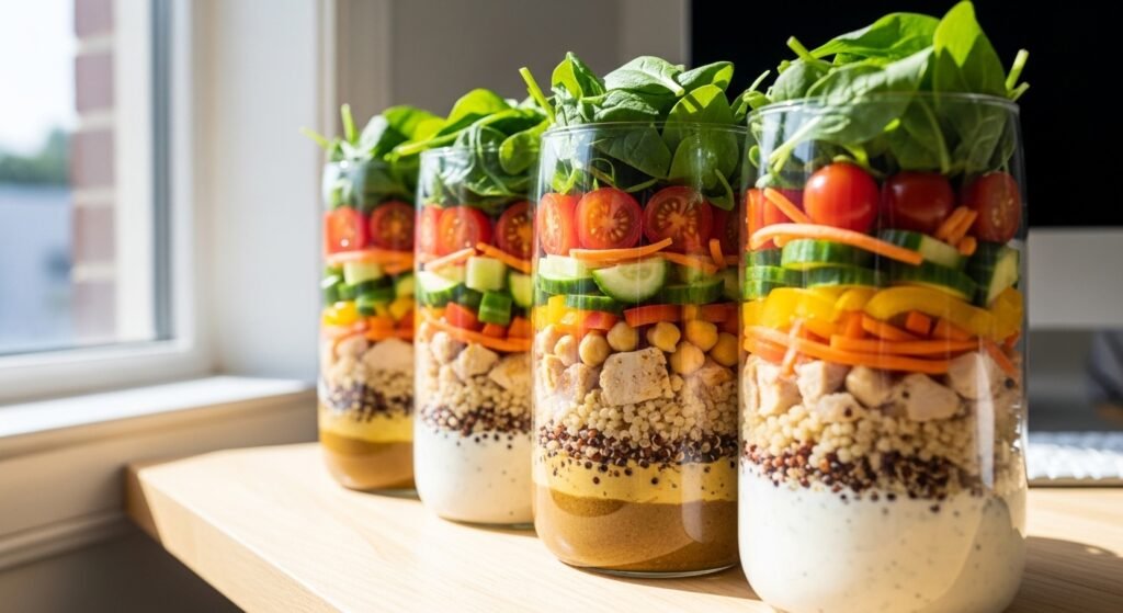 The pre-prepared meals in layered jar salads accomplish aesthetics. The ingredients are organized in a carefully considered manner to make the textures fresh and ensure that visual meals are prepared. These carrying salads will target individuals that work at home or study and want to take a fast and balanced lunch.