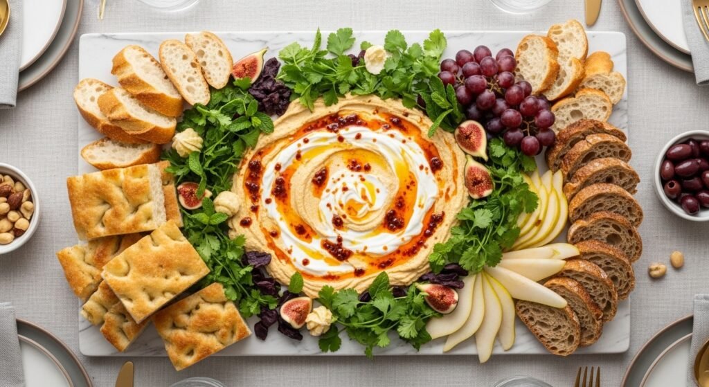 Butter boards have grown out of their primitive condition. One more tendency of creators is to play with the boards of hummus, spreading yogurts, cultural variants of cream cheese, on the top of them with herbs, fruits, or chili oil. They are also party-going as they are combined in their dipping concept.