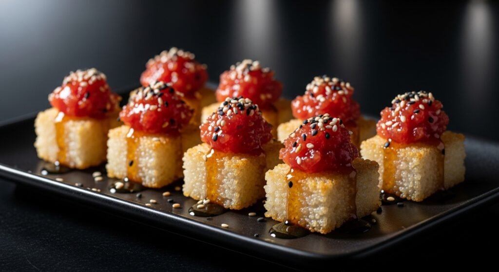 New grounds keep being found with recipes of Crispy rice. Baked simple sushi rice squares, spicy tuna rice bites and sweet coconut variations, make it clear that even with just one base ingredient, an endless number of crunchy flavor-loaded snacks can be created, number of topping possibilities being unlimited.