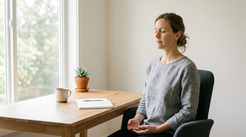 Five minutes. Inhale. Second inhale. Long exhale. No charge, evidence-based, and free today. It is just whether you will put it before the anxiety puts you to the test first.