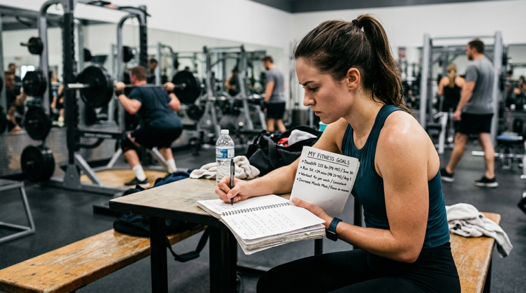 Fitness goals written down have a higher probability of achievement (42%). There is no work like having a general body goal in a rough form floating around your head and bound forever to paper.