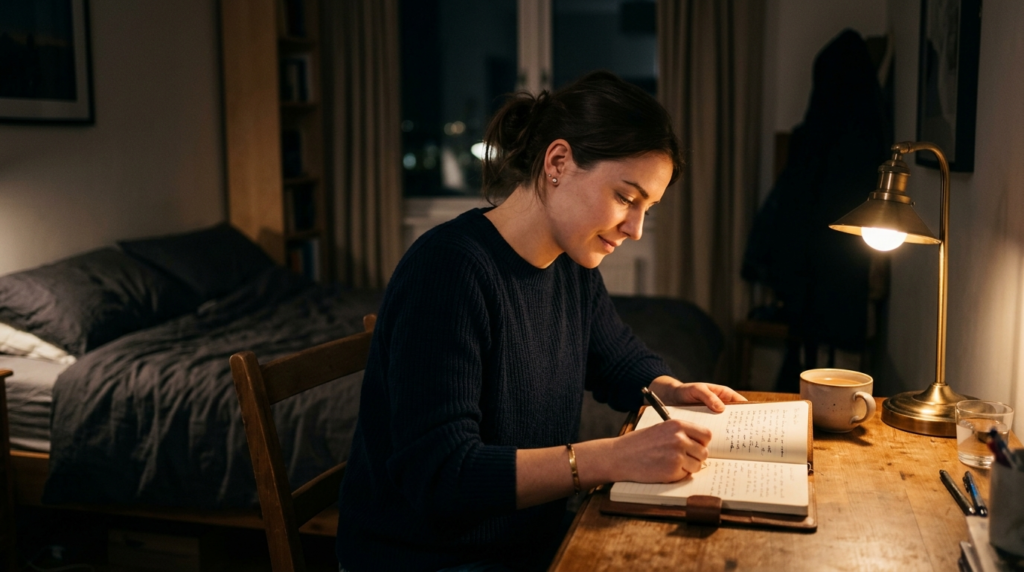 Research indicates that there is a reduction in cortisol under the effect of expressive writing. The lower the level of stress hormone, the better the rest, the quality of sleep, and a great deal more energy will be in us for every single training session in the future.