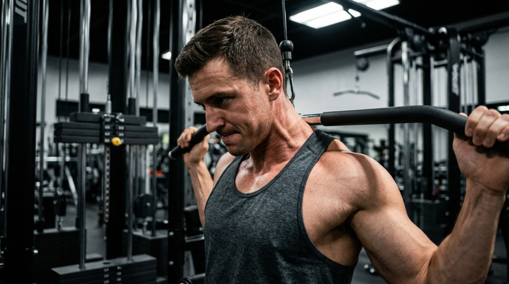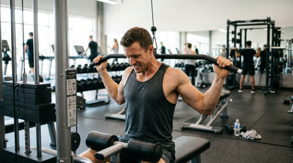 The exercise trainers who are most regularly identified by the neck lat pulldowns as unnecessarily risky ,are the ones at the back of the neck. This abnormal cervical spine and shoulder position causes compression and stress, which is dangerous in the long run.