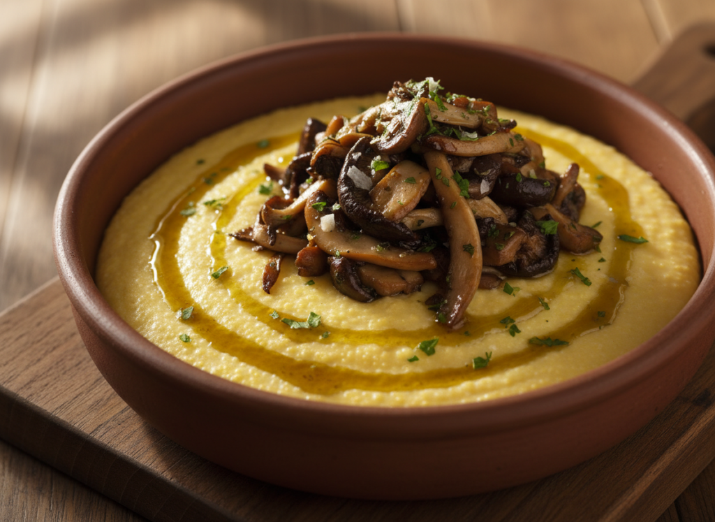 The polenta is creamy and received in the form of truffle taste. The feeling is careless and pre-determined. It is consumed as a side meal or meal.