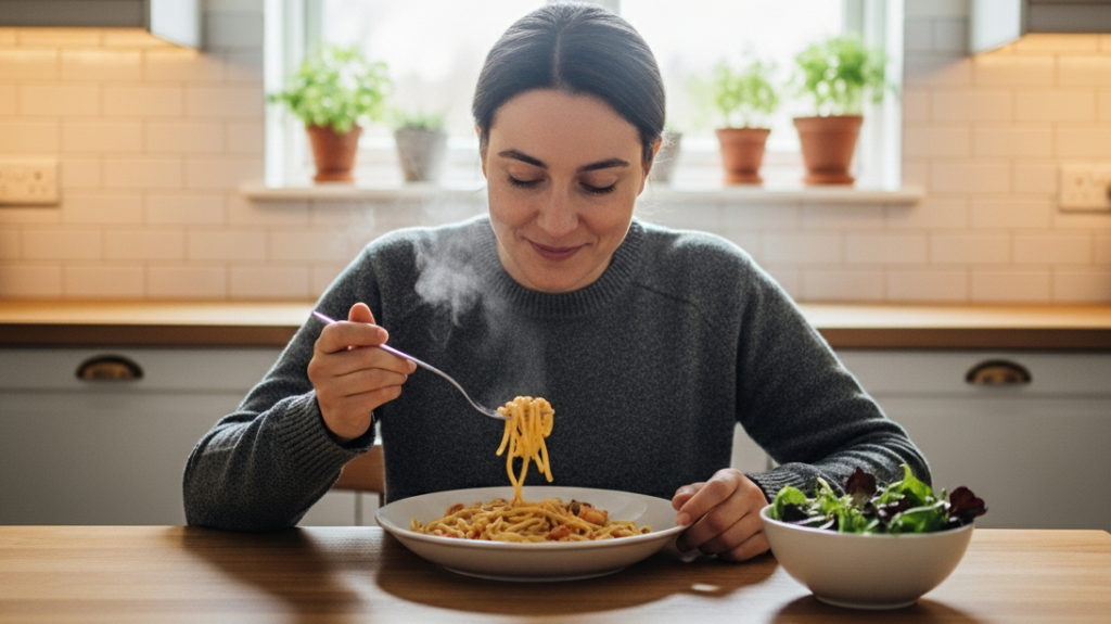 Binges sometimes follow strict limits on food. When someone cuts back too much, hunger can push them over edge later. Sticking to steady meals helps break that pattern.