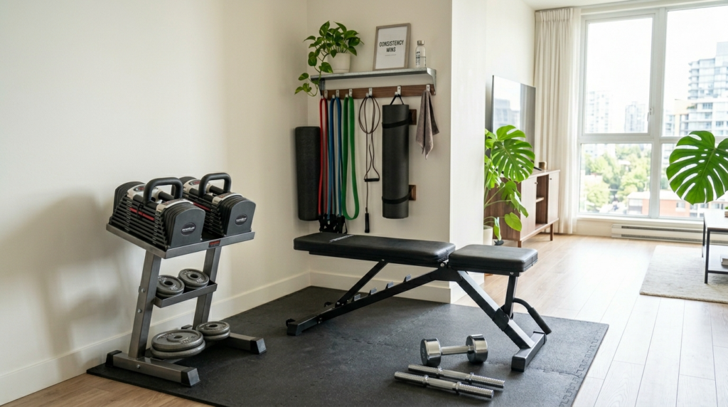 Men are transforming corners, balconies, and living rooms into training places. Adjustable dumbbells, foldable benches, and wall-installed storage make you think you only need less space than you had previously imagined in order to have a setup that can be as competitive as any gym floor found in a commercial establishment.